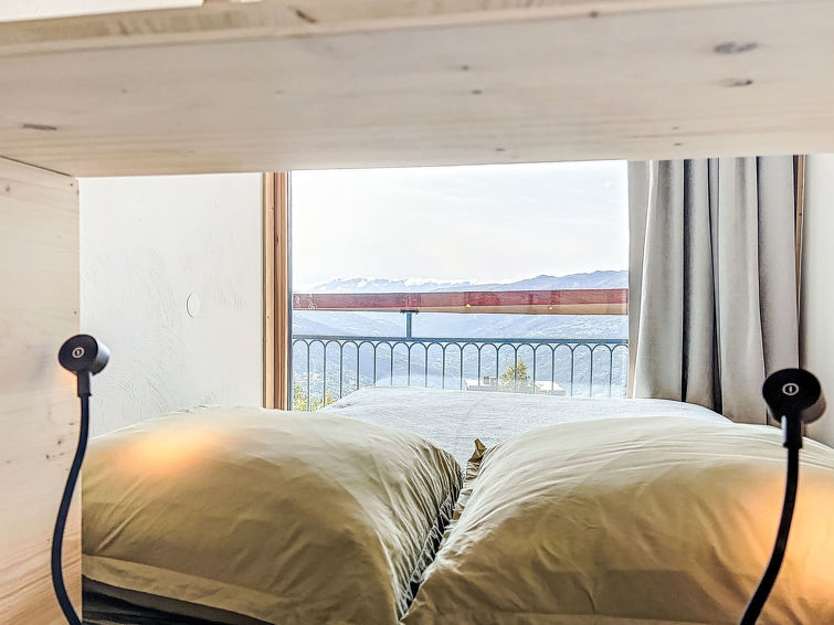 2-Zimmer-Wohnung 38 m2 im 3. Stock. Renoviert, komfortabel und geschmackvoll eingerichtet: Wohn-/Esszimmer mit TV (Flachbildschirm). Ausgang zum Balkon, Richtung Südwesten. Verbundenes Zimmer mit 1 x 2 Etagenbetten (80 cm, Länge 190 cm). 1 Zimmer mit 1 franz. Bett (160 cm, Länge 200 cm). Offene Küche (Backofen, Geschirrspüler, 4 Induktionskochplatten, Toaster, Wasserkocher, Mikrowelle, elektrische Kaffeemaschine, Kapseln für die Kaffeemaschine (Nespresso) extra) mit Esstisch. Bad, sep. WC. Sehr schöne Panoramasicht auf die Berge und die Skipiste. Zur Verfügung: Waschmaschine, Bügeleisen, Haartrockner. Internet (WLAN, gratis). Höhe 180 cm. Bitte beachten: Nichtraucher-Unterkunft. Rauchmelder. chauffe-boots et radio Bluetooth. Inserat einer Privatperson nach Artikel 155, IV, CGI.