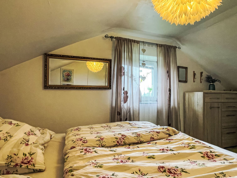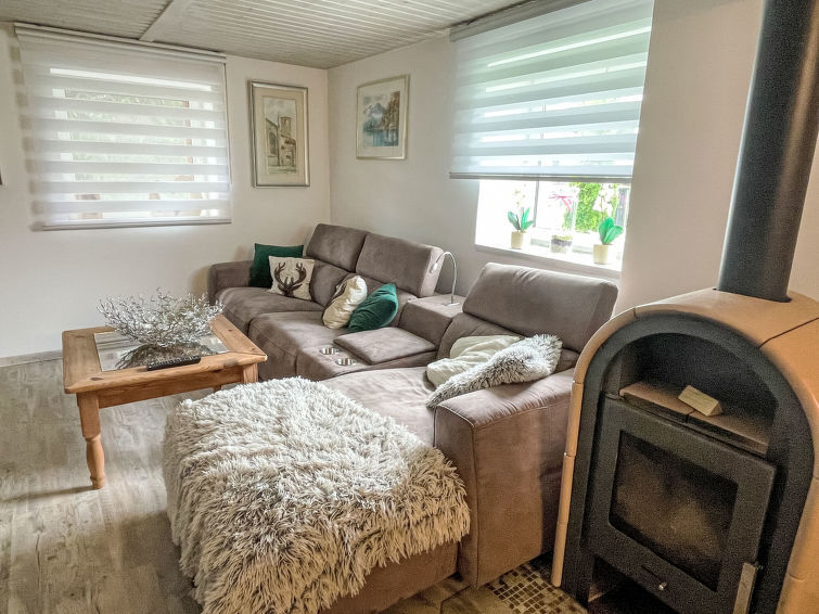 Huis 3-kamers 126 m2 op 2 verdiepingen. Comfortabel ingericht: woon-/slaapkamer met 1 2-pers divanbed (160 cm, lengte 200 cm), zwedenkachel en Sat-TV (Flatscreen TV). Uitgang naar het terras. 1 kamer met 1 2-pers bed en verwarming. Keuken (afwasmachine, 4 keramische glas kookplaten, broodrooster, waterkoker, elektrische koffiemachine) met verwarming. Aparte WC. Bovenverdieping: (steile trap), 1 kamer met 1 2-pers bed, air-conditioning en heteluchtverwarming. Douche/WC. Groot terras. Terrasmeubelen. Mooi uitzicht op het landschap. Ter beschikking: wasmachine. Internet (WiFi, gratis). Parkeerplaats (2 Auto's) bij het huis. Rookvrij huis. Rookmelders.