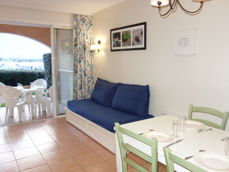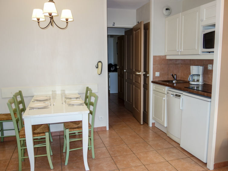 Appartement 2-kamers 32 m2, op de begane grond. Doelmatig en mooi ingericht: woon-/eetkamer met 2 bedden (80 cm, lengte 190 cm), TV (Flatscreen TV). Uitgang naar het terras. 1 kamer met 1 2-pers bed (1 x 140 cm, lengte 190 cm). Kookhoek (afwasmachine, 4 keramische glas kookplaten, broodrooster, waterkoker, magnetron, elektrische koffiemachine). Badkamer, aparte WC. Elektrische verwarming. Terras 8 m2, overdekt, op het zuidwesten gelegen, kleine zithoek in de tuin 4 m2. Terrasmeubelen. Uitzicht op zee en het zwembad. Ter beschikking: wasmachine. Internet (Internet (WiFi), extra). Parkeerplaats nr. 428 (Niveau P1) (overdekt), hoogte 190 cm, breedte 240 cm. Maximaal 1 huisdier/hond toegestaan. TV alleen FR. Rookmelders.