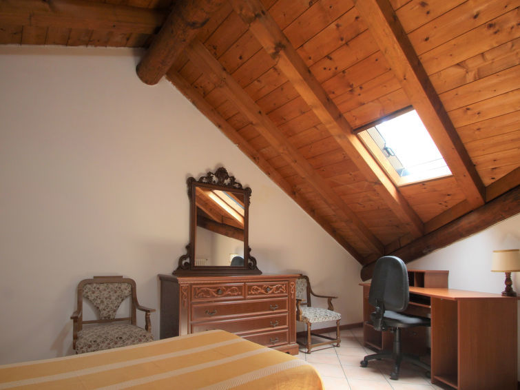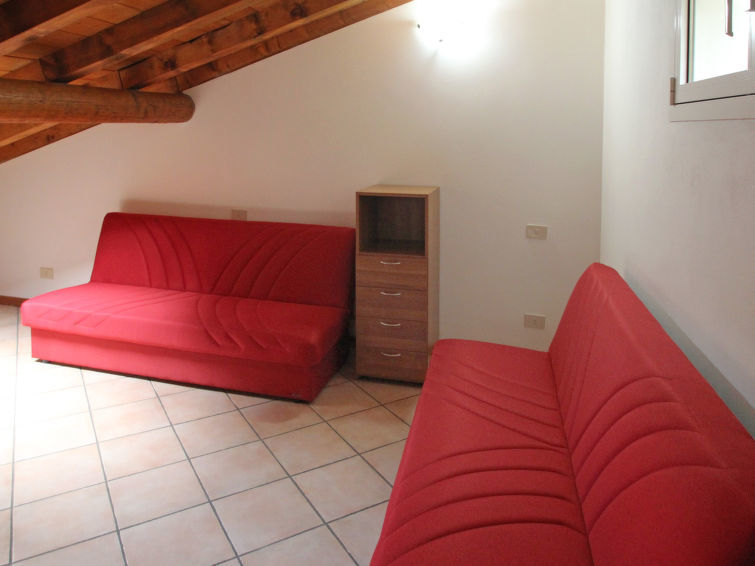 "Relax", appartement 5-kamers 120 m2 op 2 verdiepingen op de 2e verdieping. Doelmatig ingericht: hal. Open eetkamer. 1 2-pers. kamer. 1 kamer met 1 x 2 stapelbedden. Open keuken (4-pits kookplaat, oven). Douche/bidet/WC. Bovenverdieping: woonkamer met afgeschuinde daken met dakraam met 2 divanbedden en TV. 1 kamer met 2 bedden. Bad/bidet/WC. Gas-verwarming (extra). Verwarming alleen beschikbaar van 15.10. tot 15.04. Klein balkon. Beperkt uitzicht op het meer. Ter beschikking: wasmachine, kinderstoel, kinderbed tot 2 jaar, haardroger. Internet (Internet (WiFi), gratis). De kamer met het stapelbed heeft een hoog raam met uitzicht op de badkamer. De tweepersoonsslaapkamer heeft een hoog raam met uitzicht op de keuken. IT013249C2SXKKTXMH
