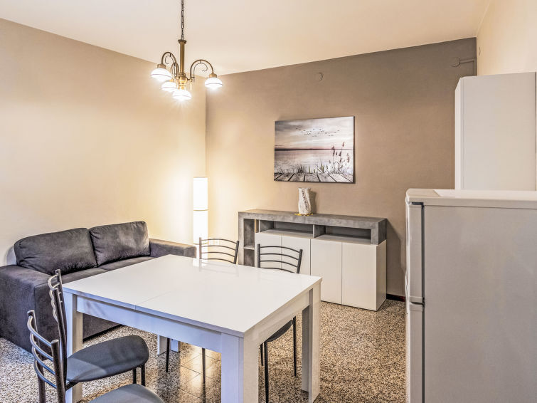 Appartement 2-kamers 35 m2 op de 1e verdieping. Doelmatig ingericht: 1 2-pers. kamer. Woon-/eetkamer met TV. Kookhoek (4-pits kookplaat, oven, diepvriezer) met eettafel. Bad/douche/bidet/WC. Olie-verwarming (extra). Verwarming alleen beschikbaar van 15.10. tot 15.04. Klein balkon. Ter beschikking: Internet (Internet (WiFi), gratis). IT017076C2JSV6EVCU