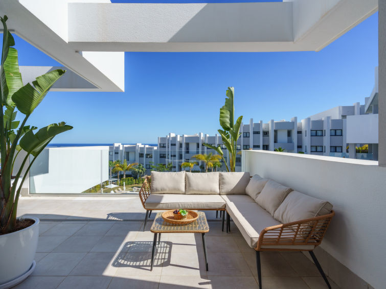 La Chullera 3 km van Puerto de La Duquesa: Flatgebouw "Ático Sea View Pure South", bouwjaar 2022. 1 km van zee, 1 km van het strand. Voor medegebruik: openluchtzwembad (seizoensgebonden beschikbaarheid: 01.Jan. - 31.Dec. openingstijden zwembad: 09:00-21:00) met zout-elektrolyse. Onregelmatig zwembad. Kinderzwembad. In het complex: fitnessruimte, speelkamer, lift, air-conditioning (voor medegebruik). Winkel 2.4 km, restaurant 1 km, bushalte "Bus Stop Duquesa West, N-340," 2.7 km, treinstation "Algeciras" 52.2 km, zandstrand "Manilva beach" 1 km. Jachthaven 2.9 km, jachthaven 10.1 km, golfterrein (18 holes) 2.4 km, surfschool 2.9 km, zeilschool 2.9 km, tennis 11.6 km, midgetgolf 7.6 km, manege 12.6 km. Attracties in de buurt: Puerto Deportivo Sotogrande 10.1 km, Centro Histórico Estepona 15.3 km, Gibraltar 35.6 km, Selwo Aventura 25.8 km, Marbella 42.6 km, Tarifa 71.7 km. Wandelgebied El Caminito del Rey 109 km, Senda Litoral Manilva a Punta Chullera 3.1 km. Auto noodzakelijk. Geschikt voor families. De eigenaar accepteert geen jeugdgroepen. De omgeving is gevoelig voor geluidsoverlast. Gelieve geen lawaai te maken en de rust te bewaren.