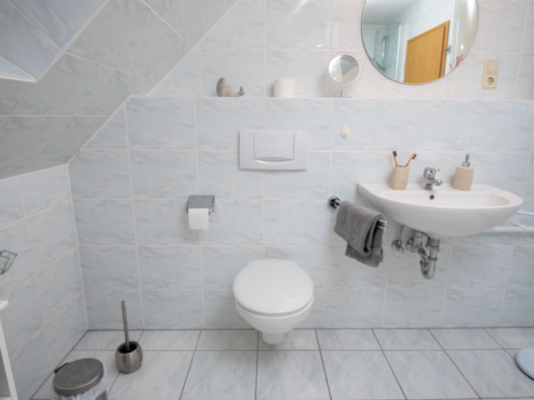 Twee onder één kap woning "Nilles". Aan de rand van de plaats, 2 km van het centrum van Norden, 3.8 km van zee, 5 km van het strand, aan een doodlopende weg. Voor alleengebruik: tuin. In het huis: bergruimte voor fietsen, centrale verwarming. Parkeerplaats bij het huis. Winkel 2.4 km, levensmiddelenwinkel 2.4 km, supermarkt 2.4 km, restaurant 2.3 km, bakkerij 1.4 km, café 2.4 km, bushalte 600 m, treinstation 3.5 km, veerboot 3.8 km, zandstrand 5 km, openluchtzwembad 12.8 km, overdekt zwembad 1.4 km. Golfterrein (18 holes) 7 km, surfschool 4.1 km, midgetgolf 3.7 km.