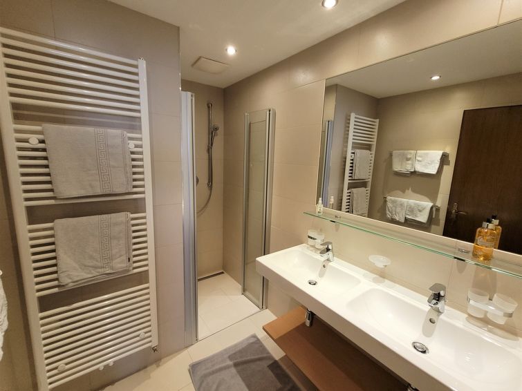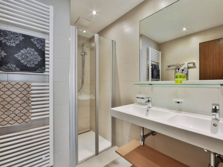 "Top 5", appartement 2-kamers 55 m2 op de 2e verdieping. Comfortabel en gezellig ingericht: hal. 1 2-pers. kamer met 1 bed en 1 2-pers bed. Uitgang naar het terras. Woon-/eetkamer met 1 bed, 1 divanbed, eethoek en Sat-TV (Flatscreen TV). Kookhoek (afwasmachine, 4 keramische glas kookplaten, waterkoker, elektrische koffiemachine). Douche/WC. Verwarming. Houten vloeren. Groot terras, op het noorden gelegen. Terrasmeubelen. Zijdelings uitzicht op de bergen en de plaats. Parkeerplaats (1 Auto). Woning aan de straatzijde. Niet rokers woning. Maximaal 1 huisdier/hond toegestaan.