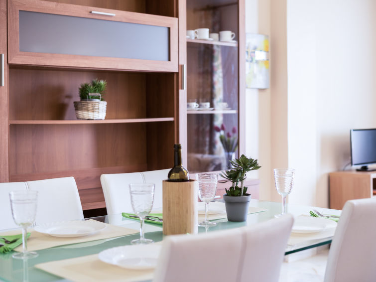 Appartement 3-kamers 92 m2 op de 1e verdieping. Het objekt is geschikt voor 4 volwassenen + 1 kinderen. Comfortabel en gezellig ingericht: woon-/eetkamer met Digitale TV, Flatscreen TV en air-conditioning. Uitgang naar het terras. 1 kamer met 1 2-pers bed. 1 kamer met 2 bedden (90 cm), 1 opklapbed. Keuken (oven, 3 keramische glas kookplaten, magnetron, diepvriezer) met eettafel. Bad/WC. Verwarming, air-conditioning. Terrasmeubelen. Panoramazicht. Ter beschikking: wasmachine. Parkeerplaats. Geschikt voor families. VUT/MA/33318 // Reg. Nr.: ESFCTU0000290210005080320000000000000000VUT/MA/333187