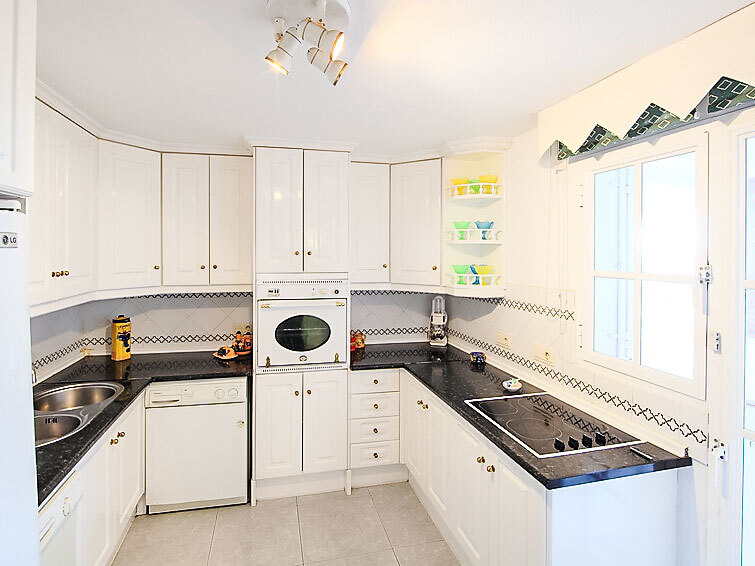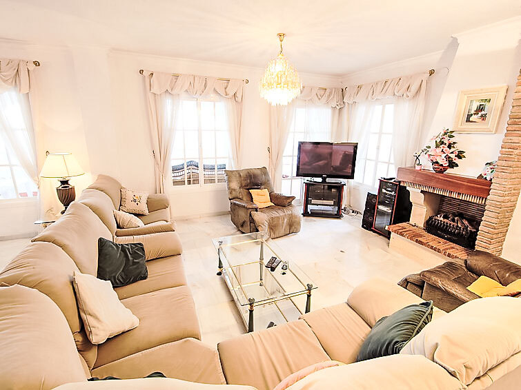 Urb.Los Pinos: Groot, comfortabel huis "Villa Mimosa", bouwjaar 1996. Buiten de plaats, 2 km van het centrum van Almuñecar, zonnige, verhoogde ligging op een heuvel, 1 km van zee. Voor medegebruik: openluchtzwembad (6 x 15 m, seizoensgebonden beschikbaarheid: 01.Mei. - 31.Okt. openingstijden zwembad: 10:00-20:00). Buitendouche. In het huis: fitnessruimte. Trappenweg (20 treden) naar het huis. Eigen garage. Winkel 1 km, levensmiddelenwinkel 1 km, restaurant 1 km, bushalte 1 km, stenenstrand 1 km. Tennis 1 km. De eigenaar accepteert geen jeugdgroepen. De omgeving is gevoelig voor geluidsoverlast. Gelieve geen lawaai te maken en de rust te bewaren.